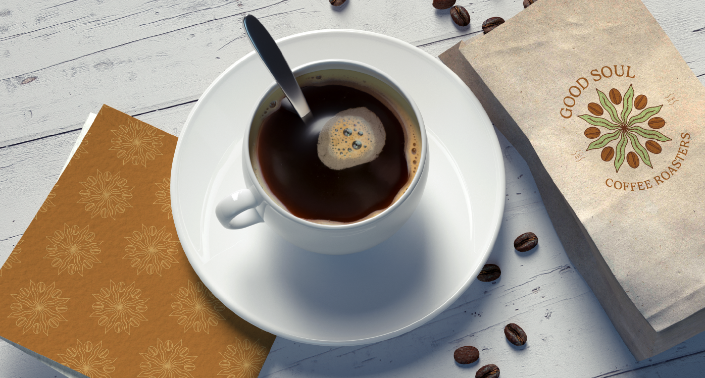 Good Soul Coffee draws inspiration from the tranquility and balance of nature, with a logo rooted in the intricate beauty of a mandala. The design features symmetrical patterns that evoke a sense of harmony and interconnectedness, reflecting the meditative ritual of enjoying a perfectly brewed cup of coffee. The earthy color palette—warm browns, soft greens, rich terracottas, and golden yellows—captures the essence of natural, organic flavors and the grounding power of the earth.
